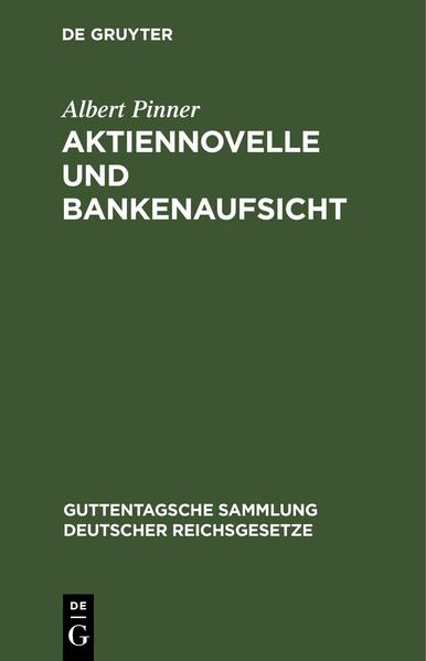 Pinner, AlbertFrontmatter -- Inhalt -- Abkürzungen -- Einführung in die Aktiennovelle -- Vorschriften über Aktiengesellschaften und Kommanditgesellschaften auf Aktien -- Anhang. Kuratorium und Reichskommissar für das Dankgewerbe -- Sachregister -- Backmatter