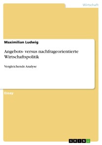 Essay aus dem Jahr 2020 im Fachbereich BWL - Wirtschaftspolitik, Note: 1,0, FOM Essen, Hochschule für Oekonomie & Management gemeinnützige GmbH, Hochschulleitung Essen früher Fachhochschule, Sprache: Deutsch, Abstract: Die Coronakrise und die Auswirkungen der Eindämmungsmaßnahmen (Shutdown) stürzen die deutsche Wirtschaft in eine seit dem Zweiten Weltkrieg nie da gewesen Krise. In der ersten Jahreshälfte 2020 wird ein Rückgang der Wirtschaftsleistung um 18 % erwartet. Im Gesamtjahr 2020 wird das deutsche BIP um 9 % zurückgehen, bevor es wieder in 2021 voraussichtlich um 4 % zulegt. Die Corona-Pandemie trifft den deutschen Arbeitsmarkt mit voller Härte und anders als in der Finanzmarktkrise von 2009. Die Krise wirkt zum einen als Angebotsschock und zum anderen durch die kontaktbeschränkenden Maß- nahmen als Nachfrageschock. Die Bundesregierung hat mit einem Schutzschild für Beschäftigte und Unternehmen reagiert. Sowohl die Angebots- und die nachfrageorientierte Wirtschaftspolitik bieten Maßnahmen, um Wirtschaftskrisen zu bewältigen. Ein Vergleich beider wirtschaftspolitischen Konzepte skizziert Grundannahmen, Ansatzpunkten und Probleme.