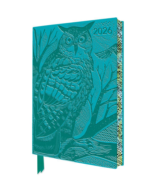Angela Harding: Long Eared Owl 2026 Artisan Art Vegan Leather Diary Planner - Page to View with Notes
