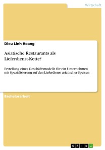 Dieu Linh HoangBachelorarbeit aus dem Jahr 2023 im Fachbereich BWL - Sonstiges, Note: 2,7, AKAD University, ehem. AKAD Fachhochschule Stuttgart, Sprache: Deutsch, Abstract: Das Hauptziel dieser Arbeit besteht darin, ein effektives Geschäftsmodell für einen Lieferdienst asiatischer Speisen, der auf die Kundenbedürfnisse und deren Vorlieben eingeht, zu entwickeln. Dabei sollen die Erfahrungen meiner Familie in der Gastronomie sowie meine eigene Erfahrung und Leidenschaft für den Bereich des Lieferservices genutzt werden. Das Ziel ist es, ein Geschäftsmodell zu erstellen, das rentabel, nachhaltig und erfolgreich ist. Die vorliegende Arbeit fokussiert sich hauptsächlich auf den theoretischen Teil und konzentriert sich auf die Entwicklung eines Konzepts für einen Lieferdienst, der sich auf die Zustellung von asiatischen Speisen spezialisiert. Dabei liegt der Schwerpunkt auf der Erstellung eines theoretischen Modells, das noch nicht in die Praxis umgesetzt wurde. Der nächste Abschnitt der Arbeit befasst sich mit der Schaffung einer gemeinsamen Grundlage durch Definitionen relevanter Begriffe. Dies dient dazu, ein einheitliches Verständnis für das weitere Vorgehen in der Arbeit zu gewährleisten. Im Anschluss wird der Leser mit der asiatischen Küche vertraut gemacht, um eine grobe Vorstellung von den Speisen und ihrer Beliebtheit zu vermitteln. Dadurch kann das Potenzial für einen Lieferdienst für asiatische Speisen besser eingeschätzt werden. Im weiteren Verlauf wird eine umfassende Markt- und Konkurrenzanalyse durchgeführt, um den Markt für asiatische Lieferdienste in der Region Dresden zu untersuchen. Hierbei werden bestehende Wettbewerber erfasst und deren Positionierung analysiert. Zusätzlich werden Zielgruppen und deren Bedürfnisse identifiziert, um eine gezielte Ansprache und Kundenzufriedenheit sicherzustellen. Auf Grundlage der Markt- und Konkurrenzanalyse wird ein Geschäftsmodell für die Lieferung asiatischer Speisen zusammen gestellt. Dabei werden verschiedene Komponenten wie Angebotsportfolio, Preisstrategie, Lieferprozesse und Kundenservice beschrieben. Im nächsten Schritt wird das entwickelte Geschäftsmodell in die Praxis implementiert und umgesetzt. Es werden Maßnahmen und Schritte definiert, um die Umsetzung erfolgreich zu gestalten. Dabei werden auch Risiken und Herausforderungen berücksichtigt. Abschließend erfolgt die Evaluation des Geschäftsmodells, um die Rentabilität und Erfolgsaussichten zu bewerten. Hierbei werden geeignete Kennzahlen zur Erfolgsmessung verwendet und interpretiert. [...]