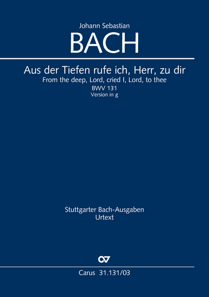 Leisinger, UlrichBei der frühen Kantate "Aus der Tiefen rufe ich, Herr, zu dir" BWV 131 geht Bach davon aus, dass die Streicher wie Singstimmen und Orgel im Chorton, die Bläser aber im tieferen Kammerton gestimmt sind. Bachs Partitur ist somit bitonal: Die Bläser stehen in a-Moll, alle übrigen Stimmen in g-Moll. Jede Zusammenführung der Partitur auf eine Tonart führt zu Kompromissen, z.B. ist der Chorbass in g sehr tief (bis C), in a aber recht hoch (bis e2). Carus bietet beide Varianten an (g-Moll: Carus 31.131/00, a-Moll: Carus 31.131/50). In Kombination beider Stimmensätze ist auch eine Aufführung mit originaler Stimmtondisposition denkbar.