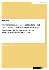 Auswirkungen der Corona-Pandemie auf die aktuellen Goodwill-Bestände sowie bilanzanalytische Kennzahlen von DAX-Unternehmen nach IFRS