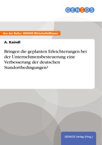 Bringen die geplanten Erleichterungen bei der Unternehmensbesteuerung eine Verbesserung der deutschen Standortbedingungen?