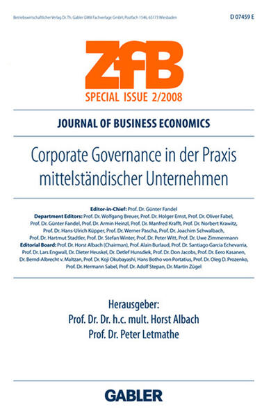 Dieses Special Issue untersucht typische Corporate Governance-Probleme mittelständischer Unternehmen in ihrer Bedeutung für eine werteorientierte Unternehmensführung.