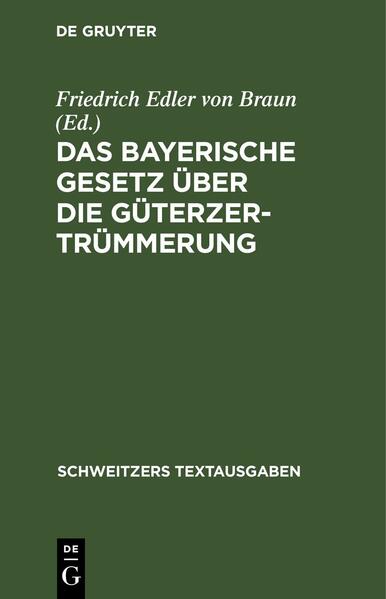 Friedrich Edler von BraunKeine ausführliche Beschreibung für "Das Bayerische Gesetz über die Güterzertrümmerung" verfügbar.<br /><br />Das E-Book Das Bayerische Gesetz über die Güterzertrümmerung wird angeboten von De Gruyter und wurde mit folgenden Begriffen kategorisiert:<br />