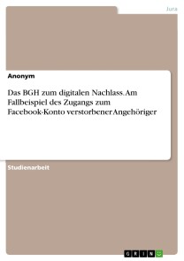 Studienarbeit aus dem Jahr 2020 im Fachbereich Jura - Zivilrecht / Handelsrecht, Gesellschaftsrecht, Kartellrecht, Wirtschaftsrecht, Note: 2,2, , Veranstaltung: Seminar, Sprache: Deutsch, Abstract: Diese Hausarbeit beschäftigt sich mit dem Thema: BGH-Beschluss vom 27.08.2020 zum digitalen Nachlass – Zugang zum Facebook-Konto der verstorbenen Tochter. Der Sachverhalt handelt von einem Mädchen, das mit 15 Jahren von einer U-Bahn erfasst wurde und verstarb. Es wurde vermutet, dass Mobbing betrieben wurde und das Mädchen Selbstmord begangen hat; um dies jedoch aufklären zu können, brauchten die Eltern die Nutzungsrechte der Seite, da sich das Profil des Mädchens in einem Gedenkzustand befand.Daraus stellte sich die Frage, wie sich der digitale Nachlass in der Zukunft weiterentwickelt. Im Folgenden handelt die wissenschaftliche Arbeit über die Grundlagen und die Entscheidung zum digitalen Nachlass. Die Punkte handeln über die praktischen Handlungen, d.h. was getan werden kann, um Probleme zu vermeiden.Die letzten Punkte der Hausarbeit beschäftigen sich mit dem BGH-Urteil. Worum ging es in dem Sachverhalt, wie entschied sich der Bundesgerichtshof, wie kam es zu dem Urteil und wie sind die Auswirkungen auf die Praxis? Diese Themenkomplexe werden ausführlich dargestellt, um einen Denkanstoß für die Zukunft zu bekommen.
