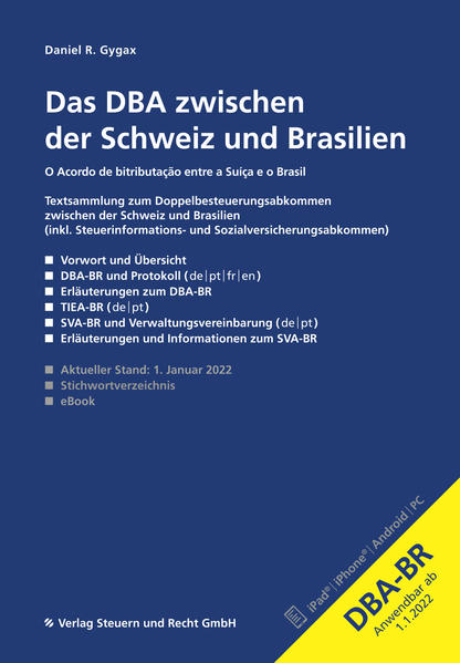 Gygax, Daniel R.Das Doppelbesteuerungsabkommen zwischen der Schweiz und Brasilien (DBA-BR) ist am 16. März 2021 in Kraft getreten. +++ Das DBA-BR ist eines der ersten Abkommen, welches die Schweiz basierend auf dem OECD-Musterabkommen 2017 (OECD-MA 2017) neu abgeschlossen hat; es enthält folglich auch die abkommensbezogenen Mindeststandards aus dem BEPS-Projekt der OECD / G20. Das Abkommen selbst ist viersprachig abgedruckt ( de | pt | fr | en ), sodass die einschlägigen Fachbegriffe direkt vergleichend übersetzt werden können. Das Werk enthält zudem die Erläuterungen aus der Botschaft des Bundesrates. Darin wird auf genau jene Passagen hingewiesen, die vom OECD-MA 2017 abweichen. +++ Neben dem DBA-BR hat die Schweiz weitere wichtige Abkommen mit Brasilien abgeschlossen. Deshalb sind der Vollständigkeit halber auch das Steuerinformationsabkommen (TIEA-BR) und das am 1. Oktober 2019 in Kraft getretene Sozialversicherungsabkommen (SVA-BR) aufgeführt. Letzterem sind ebenfalls die Erläuterungen des Bundesrates und wichtige Merkblätter beigefügt. +++ Diese kompakte Textsammlung ist für Treuhänder, Steuerfachleute und Experten des internationalen Steuerrechts, insbesondere für solche mit Anknüpfungspunkten im schweizerisch-brasilianischen Verhältnis, ein unentbehrliches Arbeitsinstrument.