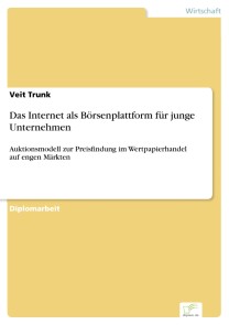 Veit TrunkInhaltsangabe:Einleitung:Die Entwicklung des Internets und die sich daraus entwickelnden elektronischen Handelsmöglichkeiten haben in den Vereinigten Staaten zu einer Vielzahl von Gründungen Junger Unternehmen in dem sich rasant entwickelnden Hochtechnologie-Markt geführt. Zwischen 1991 und 1995 wurden dort rund sechs Millionen Arbeitsplätze durch diese Unternehmen geschaffen. Durch geringe Markteintrittsbarrieren und vergleichsweise geringem Kapitalaufwand machten es die neuen Techniken möglich, dass eine ganze Generation im Unternehmerfieber heranwuchs. Mit dem Erfolg des Neuen Marktes an der Frankfurter Wertpapierbörse und dem Vorbild des nachhaltigen wirtschaftlichen Aufschwungs in Amerika, beginnt nun auch in Europa eine Welle von Unternehmensgründungen. In Deutschland ist der Markt für Beteiligungskapital zwischen 1993 und 1998 um nahezu 100 % auf rund 5,4 Mrd. Euro angewachsen. Gründer, die mit einer guten Geschäftsidee vor Augen ein Start-Up Unternehmen aufbauen wollen, verfügen meist nicht über genug Eigenkapital um den Unternehmensaufbau und das anschließende Wachstum aus eigenen Mitteln finanzieren zu können. Als Alternative zur Fremdkapitalaufnahme hat sich die Eigenkapitalbeschaffung über Einzelinvestoren und Venture Capital Gesellschaften als Finanzierungsmöglichkeit innovativer Geschäftsideen herausgebildet. Diese Form der Kapitalaufnahme hat für die Unternehmenseigner aber oft auch ungewollte Nebeneffekte. Venture Capital Geber gehen mit ihren Engagements hohe Risiken ein. Sie fordern daher in vielen Fällen umfangreiche Mitsprache und Kontrollrechte. Darüber hinaus bestehen zwischen den Beteiligungsgesellschaften und den Unternehmenseignern bei der Bewertung des kapitalsuchenden Unternehmens oftmals sehr unterschiedliche Ansichten.Wie die Praxis zeigt, können im Vergleich zu einem Einzelinvestor an einer Börse bessere Preise für die Unternehmensanteile erzielt werden. Junge Unternehmen besitzen aber oft keinen ausreichenden Kapitalbedarf, der eine Platzierung in den traditionellen Börsensegmenten rechtfertigen würde. Als Ausweg hierzu steht solchen kapitalsuchenden Firmen die Möglichkeit der öffentlichen Platzierung von Aktien in vor- oder außerbörslichen Segmenten offen. Die Firmen platzieren hier Aktien, die von privaten Investoren gezeichnet werden. Der Vorteil dieser Art der Kapitalbeschaffung ist, dass das Kapital auf eine Vielzahl von Anteilseignern verteilt und so die Abhängigkeit von einem oder mehreren […]