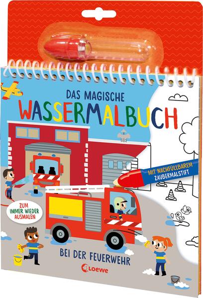 Zaubere mit Wasser! Wenn du den Stift aufdrehst und Wasser einfüllst, beginnt der Einsatz für die Feuerwehr: Fährst du mit dem Zaubermalstift über die Bilder, werden die spannenden Abenteuer der Feuerwehrleute in wunderschöne Farben getaucht. Und wenn die Seiten wieder getrocknet sind, kannst du die Magie erneut erleben! Fleckenfreier Malspaß garantiert! - Fleckenfreies Malen mit dem Wassertankstift - Sechs Motive halten jede Menge Überraschungen zum Entdecken bereit - Sehr langlebig: Die Bilder können immer wieder ausgemalt werden! - Der praktische Malblock eignet sich auch ideal für Linkshänder - Kreative Beschäftigung für unterwegs und auf der Rückbank - Mit kleinen Aufgaben zum Suchen und Finden rund um das Thema Feuerwehr für Kinder ab 3 Jahren