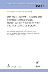 Stephan WolfAm 1. Januar 2023 wird die erste Etappe des neuen Erbrechts in Kraft treten. Die zentralen Neuerungen dieser Revision werden zu mehr Verfügungsfreiheit und zu mehr Flexibilität bei der Realisierung individueller Anliegen des Erblassers führen. Damit steigen die Herausforderungen für die Rechtsgeschäftsplanung und -gestaltung als einer namentlich Notarinnen und Notaren obliegenden Aufgabe. Dieser Band ist den damit verbundenen Fragen gewidmet.