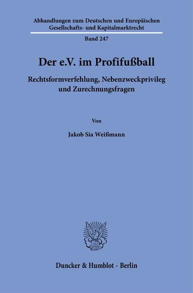 'The Registered Association in Professional Football - Failure of Legal Form, Secondary Purpose Privilege and Questions of Attribution': The thesis examines whether professional football clubs are committing a breach of legal form due to their commercial business operations in the form of the professional players' section. Particular attention is paid to BGHZ 215, 69 (= NJW 2017, 1943 ff.) and the extent to which a spin-off of the licensed players' section counteracts the legal form violation. In addition, a proposed solution for a legally compliant organisation of the club's own professional players' section is presented.