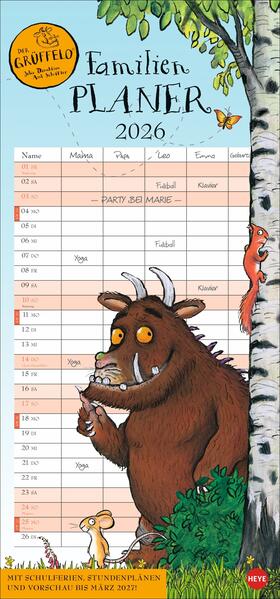 - Es gibt ihn doch, den Grüffelo! Wandkalender 2026 für die ganze Familie - Ob bei Fuchs, Eule oder Schlange - alle Verabredungen stets im Blick: Terminkalender zum Aufhängen im Format 21 x 45 cm - Mit dem Grüffelo und der Maus durchs Jahr: Familienplaner für die Wand mit lustigen Illustrationen und Texten aus den beliebten Bilderbüchern von Axel Scheffler und Julia Donaldson - Das ideale Geschenk für alle kleinen Mäuse und ihre Eltern: Der Grüffelo-Familienkalender mit 5 Spalten und 3-Monatsvorschau aufs Folgejahr - Lustige Kalender für die gesamte Familie: Die Wandkalender von Heye aus dem Athesia Kalenderverlag