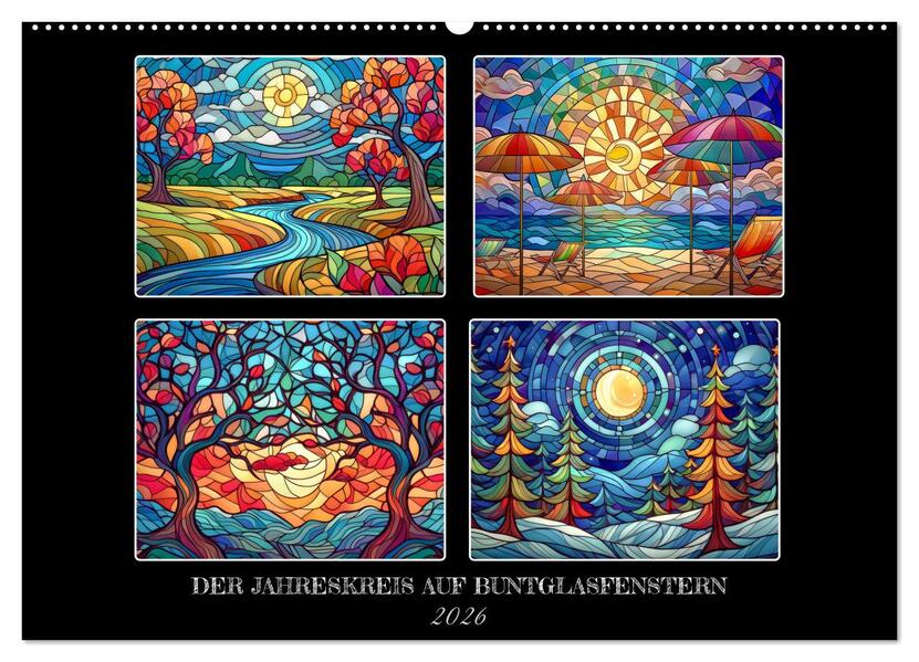 Der Jahreskreis auf Buntglasfenstern (Wandkalender 2026 DIN A2 quer), CALVENDO Monatskalender