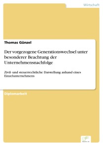 Thomas GünzelInhaltsangabe:Zusammenfassung:Planung ist die Grundlage für ein erfolgreiches Unternehmen. Insbesondere in der heutigen Zeit von verstärkt anstehenden Generationswechseln, vor allem im Mittelstand, gilt dies um so mehr für die Nachfolgeplanung. Denn die mangelnde Planung des Unternehmensübergangs kann zu Wachstumsverlusten oder schlimmstenfalls zur Liquidation des Betriebes führen. Der Seniorchef kann nicht davon ausgehen, dass der Gesetzgeber alle notwendigen Vorkehrungen getroffen hat, damit die Übertragung des Unternehmens reibungslos vonstatten geht. Die gesetzliche Erbfolge des Bürgerlichen Gesetzbuches berücksichtigt nicht die Fähigkeit des Erben zur Unternehmensführung, steuerrechtliche Problemlagen und zukünftige Liquiditäts- und Kapitalbedürfnisse des Unternehmens. Das BGB begünstigt dagegen den Zerfall der Wirtschaftseinheit, da der Miterbe jederzeit die Auseinandersetzung verlangen kann. Daher empfehlen Berater die ?Entschärfung? der Erbfolge durch die Übertragung von Vermögen bzw. Vermögensteilen noch vor dem Ableben. In der Regel versteht man darunter die Übergabe im Rahmen der sogenannten vorweggenommenen Erbfolge, die als Einleitung des vorgezogenen Generationswechsels gesehen werden kann.Die Entscheidungen hierzu treffen in der Regel der Abgebende und der Nachfolger gemeinsam, die hierzu die richtigen und notwendigen Informationen benötigen. Insbesondere für die zivil- und steuerrechtliche Beurteilung sind die an der Nachfolge beteiligten Parteien in der Regel auf die Unterstützung von Experten angewiesen. An dieser Stelle setzt die Diplomarbeit an. Sie hat das Ziel, den Mitwirkenden die gesetzlichen Regelungen der vorweggenommenen Erbfolge aus zivil- und steuerrechtlicher Sicht im Zusammenhang darzustellen.Da die meist verbreitete Rechtsform in Deutschland das Einzelunternehmen ist, behandelt die Darstellung ein entsprechendes praxisorientiertes Fallbeispiel. Vor diesem Hintergrund wird zunächst das Einzelunternehmen vorgestellt. Daran schließt sich die zivilrechtliche Darstellung an, die als Ausgangspunkt für die steuerrechtliche Betrachtung dient. Die Einkommen- und Erbschaftsteuerauswirkungen bilden die beiden steuerrechtlichen Schwerpunkte. Darüber hinaus wird auf die Umsatz-, Gewerbe- und Grunderwerbsteuer eingegangen, dessen Auswirkungen nicht zu unterschätzen sind, speziell wenn von der Übertragung eine wesentliche Betriebsgrundlage, z.B. das Betriebsgrundstück, ausgenommen ist. Der umfassende Anhang enthält […]