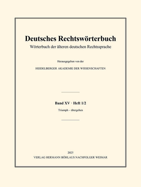 Wörterbuch der älteren deutschen Rechtssprache. Band XV, Heft 1/2 – Triumph – übergehen