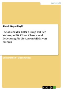 Doktorarbeit / Dissertation aus dem Jahr 2013 im Fachbereich BWL - Sonstiges, Note: 2,0, London School of Economics, Sprache: Deutsch, Abstract: Am Anfang des Einsatzes der BMW Group in der VR China standen mikroökonomische Aspekte im Vordergrund. Dies ist plausibel und bedarf keiner substantiellen Untersuchung. In diesen Wirtschaftsraum zu investieren ist nach wie vor ein Gebot der Stunde. Der Aufstieg und die damit verbundene Wucht dieser ökonomischen Supermacht auf die globale Automobilindustrie sind enorm. An diesem Aufbau der Volksrepublik trugen alle bei. China kann als ökonomische Supermacht nicht aus eigener Kraft entstanden sein und wird aus eigener Kraft auch nicht lange eine ökonomische Supermacht bleiben können. Dies kann die Historie in anderen Zusammenhängen belegen. Analogien sind daher durchaus erlaubt. Auch die Ökonomie hat Erfahrungen gemacht, die man auf die Moderne von heute transferieren kann.China ist nicht nur im Rahmen der Agenda 2015/2020 als Phänomen zu begreifen. Paradigmenwechsel können zwar hier und da auftreten, die Elite bleibt aber die Elite - und dies für eine wesentlich längere Perspektive. Leadership kann von Region zu Region und von Zeit zu Zeit differieren, die Leistung ist jedoch die gleiche und wird daher für eine Konstante sorgen. Die Potenz und das Potenzial dieses Ausnahmemarktes wird für das Wohl aller gereichen müssen, da auch die Chinesen nichts anderes im Fokus haben können.