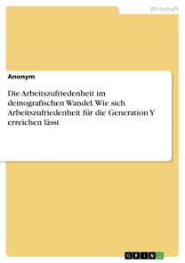 Fachbuch aus dem Jahr 2022 im Fachbereich Führung und Personal - Generation Y, Generation Z, Note: 1,0, AKAD University, ehem. AKAD Fachhochschule Stuttgart, Sprache: Deutsch, Abstract: Ziel der vorliegenden Arbeit ist es, die Arbeitszufriedenheit der Generation Y zu beleuchten und aus den Erkenntnissen konkrete Handlungsempfehlungen für Organisationen abzuleiten. Hierzu werden im Grundlagenteil zunächst die Begriffe Arbeitszufriedenheit, Generation Y und demografischer Wandel definiert. In Kapital drei wird anschließend und darauf aufbauend die Arbeitszufriedenheit der Generation Y untersucht. Hierbei werden Selbstbild und Ziele der Angehörigen dieser Generation erörtert und die Anforderungen an den Arbeitsplatz dargestellt. Die Erkenntnisse aus diesem Teilziel werden folglich in Kapitel vier für die Erarbeitung von Handlungsempfehlungen genutzt. Die darin erarbeiteten Instrumente dienen im unternehmerischen Alltag dem Erreichen der Arbeitszufriedenheit in der betrachteten Generation Y. Zum Abschluss des Assignments beinhaltet das fünfte Kapital ein Fazit sowie eine Reflexion der vorliegenden Arbeit und gibt einen kurzen Ausblick.