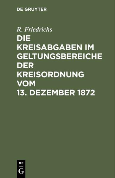 R. FriedrichsKeine ausführliche Beschreibung für "Die Kreisabgaben im Geltungsbereiche der Kreisordnung vom 13. Dezember 1872" verfügbar.<br /><br />Das E-Book Die Kreisabgaben im Geltungsbereiche der Kreisordnung vom 13. Dezember 1872 wird angeboten von De Gruyter und wurde mit folgenden Begriffen kategorisiert:<br />