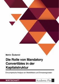 Metin ÖzdemirMasterarbeit aus dem Jahr 2022 im Fachbereich BWL - Investition und Finanzierung, Note: 1,3, Technische Universität Darmstadt, Sprache: Deutsch, Abstract: Im Rahmen dieser Arbeit wird das Konzept der Mandatory Convertibles, eine spezielle Form von Wandelanleihen, genauer untersucht. Sie sind ein bedeutendes Finanzinstrument, das in den letzten Jahrzehnten an Popularität gewonnen hat. Trotz ihrer zunehmenden Bedeutung in der Unternehmensfinanzierung, fehlt eine umfassende Betrachtung und Analyse ihrer Emissionsgründe und Werteffekte in der vorhandenen Literatur.Die Arbeit wird den theoretischen Hintergrund von Mandatory Convertibles beleuchten und die Besonderheiten gegenüber traditionellen Convertibles hervorheben. Weiterhin wird ein Schwerpunkt auf die Analyse der Auswirkungen der Emission dieser Finanzinstrumente auf den Unternehmenswert und den Aktienkurs gelegt.Einen besonderen Blick werfen wir auf die Aktienkursreaktionen der Unternehmen, die eine Emission von Mandatory Convertibles ankündigen. Ziel ist es, zu verstehen, welche Faktoren die Reaktionen der Anleger beeinflussen und welche Schlüsse Unternehmen daraus ziehen können, um ihre Kapitalstruktur zu optimieren.Darüber hinaus sollen diese Erkenntnisse dazu beitragen, die Rolle von Mandatory Convertibles in der Kapitalstruktur von Unternehmen besser zu verstehen, vor allem in Hinblick auf die Unternehmensbewertung und die Entscheidungsfindung bei der Kapitalaufnahme. Durch die Analyse vorhandener empirischer Studien sowie eigener Untersuchungen sollen die Emissionsgründe und Werteffekte von Mandatory Convertibles umfassend dargestellt und erläutert werden.Die vorliegende Arbeit liefert somit einen wichtigen Beitrag zur bestehenden Forschung über hybride Finanzierungsinstrumente und trägt zum besseren Verständnis der Rolle von Mandatory Convertibles in der modernen Unternehmensfinanzierung bei.
