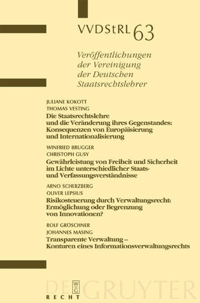 April 2004, ca. 564 Seiten, Veröffentlichungen der Vereinigung der Deutschen Staatsrechtslehrer, Bd. 63, Deutsch