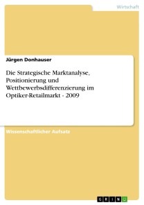 Jürgen DonhauserWissenschaftlicher Aufsatz aus dem Jahr 2012 im Fachbereich BWL - Marketing, Unternehmenskommunikation, CRM, Marktforschung, Social Media, , Sprache: Deutsch, Abstract: Das heutige Retailgeschäft der Augenoptik fundiert auf einem alten, bodenständigen Handwerk, heute wandelt es sich in einem rasanten Tempo hin zum knallharten Einzelhandelsbusiness. Erst vor ca. 60 Jahren begann die echte Filialisierung von Optikgeschäften. Nach der Studie vom 31.12.2007 des Zentralverbands der Augenoptik (ZVA) besitzen heute die zehn größten Filialisten ca. 15,5 % der Ladengeschäfte und vereinen knapp 40% des Branchenumsatzes auf sich. Die Branchengrößen behaupten von sich, dass heute zwei von drei Brillen über ihre Ladentheke abgegeben werden - Tendenz steigend.Es stehen bedrohliche Marktveränderungen an. Die vorherrschenden konjunkturellen Erwartungen , steigende Preise , Kaufzurückhaltung und Ängste der Verbraucher, lassen für viele traditionelle Betriebe existenzbedrohliche Befürchtungen aufkommen. Wie kann dieser Situation entgegnet werden? Nach Meinung des Verfassers ist eine klare Marketingkommunikation, eine klare Positionierung und ein klares Konzept für Betriebe der Optik-Branche dringend erforderlich. In dieser Studie wurde aus dem Blickwinkel einer Typologisierung des Marktes in Großfilialisten, Filialisten und traditionellen Optikern der Marktauftritt, die Positionierung dreier Gruppenvertreter untersucht und daraus Konsequenzen und Handlungsempfehlungen für die unterschiedlichen Teilnehmer am Gesamtmarkt abgeleitet. Im Rahmen der Typologisierung ist der Bereich der Online-Brillenhändler als eigene Gruppe aufgefallen und wurde als solche ergänzend betrachtet.