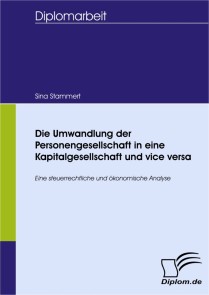 Sina StammertInhaltsangabe:Einleitung:?Ein Rechtskleid, das gestern noch passte, kann morgen zu groß, zu klein sein oder nicht mehr ausreichend schützen.? Die bei der Gründung eines Unternehmens einmal gewählte Rechtsform kann sich aufgrund der ständigen Veränderung der wirtschaftlichen, rechtlichen und steuerlichen Rahmenbedingungen im Laufe der Zeit gegenüber einer anderen Rechtsform als ungünstiger erweisen. Aufgrund dieser Dynamik kann es sinnvoll sein, die Unternehmensform durch Umwandlung anzupassen. Dabei ist das komplexe Umwandlungssteuerrecht zu beachten, welches nicht nur vom Umwandlungssteuergesetz geregelt wird, sondern auf zahlreiche Gesetze wie das Einkommensteuergesetz, Körperschaftsteuergesetz, Gewerbesteuergesetz oder Umwandlungsgesetz verweist. Das Umwandlungssteuergesetz unterlag durch das ?Gesetz über steuerliche Begleitmaßnahmen zur Einführung der Europäischen Gesellschaft und zur Änderung weiterer steuerrechtlicher Vorschriften? (SEStEG) vom 07.12.2006 einer grundlegenden Veränderung. Neben der Möglichkeit von grenzüberschreitenden Umwandlungen waren damit vielfältige Änderungen nationaler Umwandlungen verbunden. In der vorliegenden Arbeit sollen zusätzlich zum SEStEG die Änderungen durch das Unternehmensteuerreformgesetz 2008 sowie durch das Jahressteuergesetz 2008 Berücksichtigung finden.Gegenstand dieser Arbeit ist es, die Umwandlung einer Personengesellschaft in eine Kapitalgesellschaft wie auch die Umwandlung einer Kapitalgesellschaft in eine Personengesellschaft aus steuerrechtlicher und ökonomischer Sicht zu analysieren. Während beim Erstgenannten die steuerrechtlichen Folgen der Umwandlung dargelegt werden und auf Gestaltungsmöglichkeiten hingewiesen wird, erfolgen beim Zweitgenannten grundsätzliche Vorteilhaftigkeitsüberlegungen zur Gestaltung des Umwandlungsprozesses durch eine steuerliche Partialplanung. Dabei wird davon ausgegangen, dass die Entscheidung über eine Umwandlung aus nicht-steuerlichen Motiven bereits beschlossen ist und somit ein Vorteilsvergleich der steuerlichen Wahlrechte erfolgen muss. Diesbezüglich wird aus Sicht der Steuerbilanzpolitik der Frage nach dem optimalen Wertansatz der zu übertragenden Wirtschaftsgüter als zentrales betriebswirtschaftliches Entscheidungsproblem nachgegangen.Gang der Untersuchung:Die Arbeit beschränkt sich auf die Untersuchung der Ertragsteuerwirkungen. Dazu zählt die Wirkung der Einkommensteuer, Körperschaftsteuer, Gewerbesteuer und des Solidaritätszuschlags bei Umwandlungen […]
