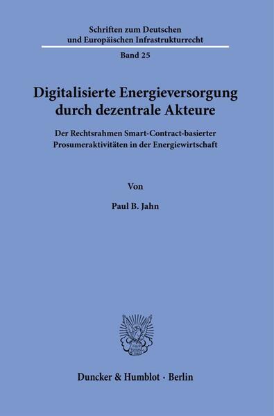 Jahn, Paul B.»Digitalized Energy Supply through Decentralized Actors - The Legal Framework of Smart Contract-based Prosumer Activities in the Energy Economy«: Based on the concepts of prosumers - as a manifestation of decentralization - and smart contracts - as a manifestation of digitalization - the dissertation analyses which legal framework applies to digitalized and decentralized energy production, trading, and distribution. Based on this analysis, it is derived how the legal framework is to be adapted to enable an adequate and active involvement of the actors and to make optimal use of their potentials in the context of the energy transition.
