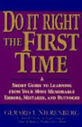 Your mistakes need not be a fact of life. We can all learn to make fewer of them. In Do It Right the First Time, world renowned personal improvement guru Gerard Nierenberg shows us just how we can reduce the number of errors we make--both in and out of life and the workplace. Nierenberg's Error Awareness System teaches us how to increase our sensitivity and cut down on the errors we make--and guard against those made by others that affect us. He shows us how to identify the causes of our errors, how to deal with them--and most importantly--how to prevent them from recurring. Packed with real-life examples, discussion questions, checklists, and helpful exercises, Do It Right the First Time covers: