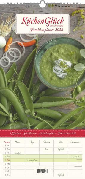 Familienplaner "Küchenglück" im Format 22 x 45 cm, Dekorative Food-Fotografie von Top-Fotografin Christel Rosenfeld Der Familienplaner "Küchenglück" ist der ideale Begleiter für ein organisiertes Jahr voller kulinarischer Inspiration. Mit 12 Monatsseiten bietet dieser praktische Kalender ausreichend Platz für die Termine und Notizen der ganzen Familie. Dank seiner übersichtlichen Aufteilung behält jedes Familienmitglied den Überblick, während zusätzliche Features wie Ferientermine für eine reibungslose Planung sorgen. Liebevoll gestaltet und mit einem charmanten Küchenthema versehen, verbindet der Kalender Funktionalität mit einem dekorativen Look - perfekt für die Küchenwand oder den Familienbereich. - 12 Monate voller Organisation: Jede Monatsseite mit viel Platz für Notizen und Termine. Mit Jahresübersicht. - Ferientermine integriert: Wichtige Schulferien und Feiertage auf einen Blick. - Praktisches Design: Ideal für Küchen, Familienräume oder als Geschenk. - Charmantes Küchenthema: Dekorativ und inspirierend für jeden Tag. Der Familienplaner "Küchenglück" sorgt für Struktur und Freude im Alltag und ist der perfekte Helfer für Familien, die Organisation und stilvolle Kalender vereinen möchten!
