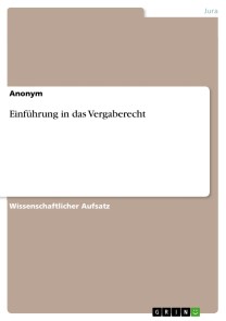 Wissenschaftlicher Aufsatz aus dem Jahr 2011 im Fachbereich Jura - Öffentliches Recht / VerwaltungsR, , Sprache: Deutsch, Abstract: Möchte eine Körperschaft des öffentlichen Rechts, wie etwa ein Landkreis, eine Gemeindeetc. einen Auftrag erteilen, zum Beispiel für Bauleistungen, für eine Lieferung oder fürbestimmte Dienstleistungen, so gilt wie immer, wenn diese Körperschaften handeln, dass siesich bei der Auftragsvergabe an gewisse Regeln zu halten haben. Diese Regeln geltenspeziell für Körperschaften des öffentlichen Rechts. Das ist dem Umstand geschuldet, dasssie im Gegensatz zu privatwirtschaftlichen Akteuren nicht mit eigenen Finanzmittelnwirtschaften, sondern das Geld der Bürger ausgeben. Hierbei soll dem Haushaltsgrundsatzder Sparsamkeit und Wirtschaftlichkeit möglichst weitgehend Rechnung getragen werden.Daher haben die öffentlichen Körperschaften bei der Auftragsvergabe eine Vielzahl vonRegeln zu beachten, damit diese fair und transparent verläuft und der geeignetste, das heißtder beste Anbieter, den Zuschlag bekommt. Den Rahmen, in dem sich die öffentlichenKörperschaften hier bewegen, bezeichnet man als das Vergaberecht