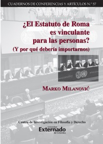 Marko MilanovicEste ensayo de Marko Milanovic analiza si el Estatuto de Roma es vinculante para individuos, esto es, si las normas que regulan los delitos internacionales son de naturaleza sustancial o jurisdiccional. Si se demuestra que son de carcter jurisdiccional, las normas sustanciales del derecho penal que se dirigen a los individuos estaran en el derecho consuetudinario, que a su vez llegara a ser un lmite de interpretacin para el Estatuto. Si, por el contrario, se determina que dichas normas del Estatuto son de carcter sustancial, existira un problema de legitimacin respecto de aquellos individuos que no han consentido en su celebracin, pero que se intenta vincular al mismo.