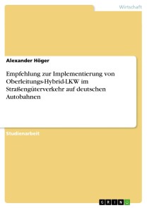 Alexander HögerStudienarbeit aus dem Jahr 2022 im Fachbereich VWL - Verkehrsökonomie, Note: 1,3, Ruprecht-Karls-Universität Heidelberg (Institut für politische Wissenschaft), Sprache: Deutsch, Abstract: Ziel des vorliegenden Policy-Papers ist es, eine Alternative als Handlungsempfehlung herauszuarbeiten und deren Vor- und Nachteile ausgiebig zu diskutieren, um am Ende eine klare Empfehlung für das Bundesministerium für Digitales und Verkehr (BMDV) geben zu können. Hierfür wird auf die Frage der ökonomischen und technischen Machbarkeit Bezug genommen, um eine plausible und machbare Umsetzung zu garantieren. Im Fokus steht dabei die Umsetzungsmöglichkeit der Oberleitungsinfrastruktur für LKW, die in einer Hybridantriebskombination erfolgen soll.Die Treibhausgasemissionen steigen im Verkehrssektor immer weiter in die Höhe. Die Ziele der Bundesregierung, die CO2 Emissionen bis 2050 auf netto-null zu bringen, erfordern konsequente Maßnahmen in allen Bereichen. Insbesondere der Verkehrssektor spielt hierbei eine besonders große Rolle, da er für rund 23 % der Gesamtemissionen in Deutschland verantwortlich ist. Gerade die Emissionen des Güterfernverkehrs steigen weiter Jahr für Jahr an und erfordern stringente Handlungsmaßnahmen zur Umsetzung der Klimaziele. Anstrengungen, den Güterverkehr auf die Schiene zu bringen, reichen aber bei Weitem nicht aus, da der Straßengüterverkehr 3/4 des Gesamtgüterverkehrs in Deutschland ausmacht. Das BMDV, hat für diese Vorhaben in den letzten Jahren mehrere Initiativen gestartet. Jedoch scheint die Regierung mit der Vielfalt an Möglichkeiten überfordert zu sein und verhindert somit den schnellen und effizienten Ausbau von Alternativen.