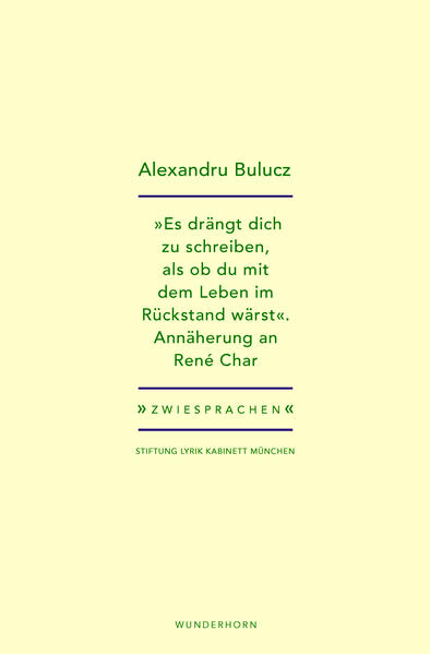 Ein Leser schrieb mir einmal, er nehme eine gewisse Hast in meinen Gedichten wahr. Das gefiel mir. Ich dachte dabei an den von mir häufig eingesetzten Versfuß des Daktylus, den Neigungswinkel und das Gefälle zwischen der betonten Silbe und den beiden unbetonten Folgesilben, an ein Fahrrad ohne Bremse, das einen Hang hinunterfährt und schneller und schneller wird. Und dann auch an eine näher rückende Zukunft und an eine im Rücken drängelnde Vergangenheit - an eine Gegenwart also, die nicht mehr viel Spiel hat. 'Es drängt dich zu schreiben / Als ob du mit dem Leben im Rückstand wärst / Wenn es so ist dann geh deinen Quellen nach / Eile dich / Eile dich weiterzugeben / Was dein ist an Wunder Wohltun und Rebellion', schrieb René Char in einer ähnlich als begrenzt empfundenen Gegenwart. Ich kehre von diesen Zeilen aus in die Zeit meines Frankfurter Studiums zurück, als ich den Résistance-Kämpfer, und er mich, zum ersten Mal las. Und ich frage mich, nicht nur mit den hypnotischen Aufzeichnungen aus dem Maquis, was eine widerständige Dichtung ausmacht, in der die politische und sonstige Mitteilung die poetische Ausdruckskraft keineswegs dominiert und Verstehen und Nicht-Verstehen zu obsoleten Lektürekategorien werden. (Alexandru Bulucz) Die Zwiesprache wird am 25. Februar 2025 im Lyrikkabinett München gehalten.