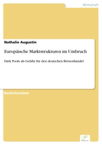 Wie sind Dark Pools entstanden, warum steigt ihre Anzahl kontinuierlich, wie hoch ist ihr Anteil am Aktienmarkt und welchen Gefahren gehen von ihnen aus? Und sind sie eine Gefahr für die deutschen Hauptbörsen?Die vorliegende Bachelorarbeit widmet sich einer umfassenden Analyse der Dark Pools und ihrer Auswirkung auf die deutschen Handelsplätze. Zu diesem Zweck wird zunächst der generelle Hintergrund der Aktienmärkte näher beleuchtet, um einen Überblick in die Prozesse und Mechanismen der Börse zu erhalten. Anschließend werden Dark Pools genauer beschrieben und ihre Entstehung sowie ihr Marktanteil näher beleuchtet. Weiter wird gezeigt, wie sich die aktuelle Handelsfragmentierung zusammensetzt und welchen Einfluss Dark Pools auf die traditionellen Marktplätze haben. Nachfolgend werden die Auswirkungen von Dark Pools auf Markt und Marktgeschehen ermittelt und dargestellt. Abschließend wird ein kritisches Fazit gezogen sowie Handlungsempfehlungen gegeben.
