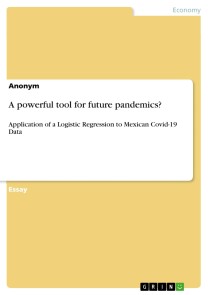 Essay from the year 2023 in the subject Economics - Statistics and Methods, grade: 2,0, University of Bayreuth, language: English, abstract: In many areas of science as well as in practice in economics, politics, etc., it is a matter of determining the probability of the occurrence of a certain event. In the field of marketing, for example, it is interesting to know which factors increase the probability of a purchase, in the field of medicine it is important to know which factors increase the risk of an illness, and in politics it will be of interest to determine the effects of certain variables on the probability of being elected. All these events can be viewed as dichotomous (binary) variables (purchase - non-purchase; disease - non-disease; election - non-election; etc.). It is precisely in these cases, when the dependent variable is dichotomous, that linear regression fails to provide a satisfactory answer. The probability for the occurrence of the event (dependent/endogenous/explained variable or regressand or also called prognosis variable) is therefore 1 minus the probability for the non-occurrence of the event. With the help of logistic regression the probabilities for the occurrence of an event can be calculated. On the one hand, this method has similarities to discriminant analysis in that it is a two-group approach. On the other hand, there are similarities to linear regression analysis, since the independent variables (exogenous/explanatory variables, regressor or predictor variables) are weighted via a regression approach (see Backhaus, p. 284). In Machine Learning and Medicine Logistic regression is widely used. Machine Learning can have a major impact in medicine since it helps analyze an enormous amount of data (See Tripepi et., 2008, p.808). This papers aim is to create a machine learning tool with logistic regression that analyzes Covid-19 Data from Mexico. In future pandemics such an algorithm could help physicians and health authorities to answer questions like: Who should be vaccinated first or who has a higher risk of a severe course of the disease? Answering these kind of questions quick and based on data could save a lot of resources and could dampen the course of the pandemic. Furthermore it simplifies difficult decisions and could also provide help for decision making in a Triage-Situation when resources are scarce.