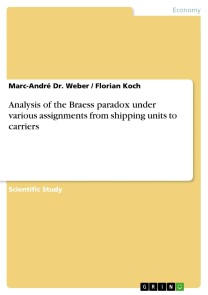Scientific Study from the year 2014 in the subject Economy - Transport Economics, grade: 2, University of Duisburg-Essen, language: English, abstract: The Braess paradox, introduced by D. Braess in 1968, describes the situation in which the total time spent in a system for at least two vehicles travelling from one node to another within a network of several nodes may increase if an additional path is added. This effect is due to non-cooperative behavior of the subjects involved and the fact that time consumption on the paths depends on their respective congestion. In this Game Theoretical paradox, full information is given to all vehicles about the theoretically shortest path for one vehicle, measured in time units, disregarding any congestion, which leads to a routing decision of individual rationality. This paper analyzes the Braess paradox if several shipping units have to be transported by multiple vehicles and load weight influences traffic congestion. A mixed integer linear programming formulation is used to model the problem. We introduce the model in detail, give numerical examples and analyze the results. A brief literature review on previous publications dealing with the Braess paradox is given as well.