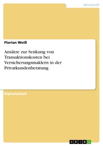 Florian WeißDiplomarbeit aus dem Jahr 2014 im Fachbereich BWL - Bank, Börse, Versicherung, Note: 2,0, AKAD-Fachhochschule Pinneberg (ehem. Rendsburg), Sprache: Deutsch, Abstract: Der Fokus dieser Arbeit liegt auf der Betrachtung der Kosten, die in einem Versicherungsmaklerunternehmen (VMU) anfallen, die sich auf die Vorbereitung, Abwicklung und Nachbereitung der Transaktionen mit den Kunden beziehen. [...] Das Ziel dieser Arbeit ist das Darstellen von konzeptionellen Ansätzen, welche die dauerhafte Senkung von Transaktionskosten für Versicherungsmaklerin der Privatkundenberatung ermöglichen. Bedingung ist dabei, dass kein einseitiger Fokus auf die Senkung von Transaktionskosten gelegt wird, sonderndass bestehende Beratungs- und Betreuungsprinzipien ohne Qualitätsverlustübernommen werden können. Es werden unterschiedliche Konzeptediskutiert, die auch in ihrem Umfang variieren. Damit wird dem UmstandRechnung getragen, dass sich die Versicherungsmakler derzeit an unterschiedlichenAusgangspositionen befinden und sich demnach auch differenziertemKostendruck ausgesetzt sehen. Zudem sind die vorgestellten Ansätzeweitgehend unabhängig von der aktuellen Diskussion um die Vergütungsmodelleder Versicherungsmakler.Nach der Einleitung werden im zweiten Kapitel die für die Schilderung derAnsätze benötigten Begriffe definiert und von verwandten Begriffen abgegrenzt.Dabei liegt der Schwerpunkt auf dem Begriff der Transaktionskosten.Das dritte Kapitel umfasst die Aufstellung dreier Hypothesen zum relevantenThemenbereich, welche die Grundlage für die empirische Erhebung bilden.Eine Auswahl der Hypothesen und die Verifizierung bzw. Falsifizierung wirdvorgenommen sowie erste Ansätze für die Lösung der aufgetretenen Problemeformuliert.Im vierten Kapitel, welches den Schwerpunkt der Arbeit bildet, werden dreiausgewählte Ansätze zur Senkung von Transaktionskosten detailliert aufprozessorientierte Weise und damit in Anlehnung an die Hauptaktivitäten(Akquisition, Betreuung und Abwicklung)9 des Maklers beschrieben. Zusätzlichwird jeder Ansatz in Bezug auf mögliche Risiken betrachtet. Am Endedieses Kapitels erfolgt eine ganzheitliche und kritische Würdigung der beschriebenenKonzepte.Abschließend werden die Ergebnisse der Arbeit zusammengefasst und einkritischer Ausblick auf aktuelle Diskussionen zu Gesetzesänderungen aufeuropäischer Ebene vorgenommen. In die Schlussbetrachtung wird auch dieVerantwortung der Produktgeber einbezogen und es erfolgt eine persönlicheMeinung des Autors.