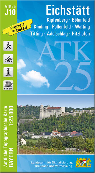 Wer es genau wissen will, greift zur ATK25. Diese Kartenserie im Maßstab 1:25000 bildet mit ihrer detaillierten Darstellung das komplette Verkehrsnetz mit allen Straßen und Wegen ab. 237 Einzelblätter stellen Bayern flächendeckend dar. Ein Kartenblatt umfasst ca. 21 km x 22 km. Was bietet die ATK25? ¿ individuelle Freizeitgestaltung mit allen ausgeschilderten Wander- und Radwanderwegen ¿ sichere Orientierung auch abseits der markierten Routen ¿ umfangreiches Spektrum an Freizeiteinrichtungen und Sehenswürdigkeiten ¿ anschauliche Wiedergabe der Geländeformen Kartenblatt ATK25-J10 Eichstätt REGION: Oberbayern, Fränkische Alb, Altmühltal, Hofstetter Forst ORTE: Eichstätt, Kipfenberg, Böhmfeld, Kinding, Pollenfeld, Walting, Titting, Adelschlag, Hitzhofen