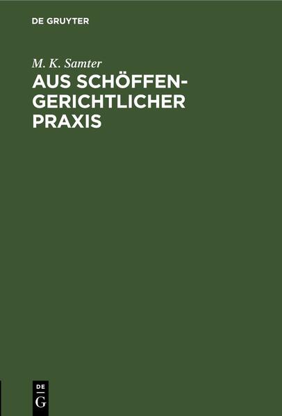M. K. SamterKeine ausführliche Beschreibung für "Aus schöffengerichtlicher Praxis" verfügbar.<br /><br />Das E-Book Aus schöffengerichtlicher Praxis wird angeboten von De Gruyter und wurde mit folgenden Begriffen kategorisiert:<br />
