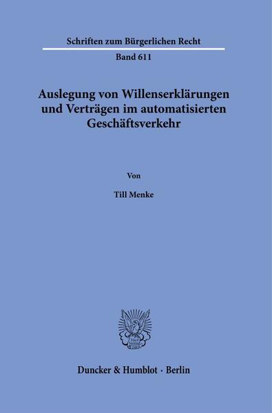 Menke, Till'Interpretation of Automated Contractual Transactions': Automated devices are increasingly being used in legal transactions - from simple vending machines to AI. Humans as actors in legal transactions, as understood in the base concept of the German Civil Code (BGB), are playing an increasingly minor role in more and more cases. This thesis analyses the effects on interpretative doctrine within the context of the legal, technical and psychological foundations of legal communication in the form of declarations of will and contracts.