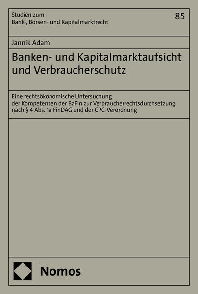 Adam, JannikDie Arbeit zeigt die gestiegene Bedeutung des Verbraucherschutzes in der Aufsichtspraxis der BaFin auf und schlägt ein Konzept zur Abgrenzung des Einleger- und Anlegerschutzes vom Verbraucherschutz vor. Mithilfe der ökonomischen Analyse des Rechts werden die Fragen beantwortet, welche Potentiale und Gefahren die Einbindung der BaFin in die Durchsetzung von verbraucherschützenden Vorschriften des Zivilrechts hat und ob dafür neben den bestehenden kollektiv-zivilrechtlichen Rechtsdurchsetzungsmechanismen Raum verbleibt. Zudem werden die Kompetenzen der BaFin zur Durchsetzung verbraucherschützender Vorschriften des Zivilrechts untersucht und das bisher weitgehend ungenutzte Potential der Befugnisse nach der CPC-Verordnung herausgearbeitet.