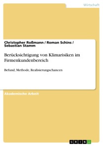 Akademische Arbeit aus dem Jahr 2018 im Fachbereich BWL - Bank, Börse, Versicherung, Note: 2,3, Hochschule der Sparkassen-Finanzgruppe Bonn (Hochschule der Sparkassen-Finanzgruppe), Veranstaltung: Graduate / Master / MBA, Sprache: Deutsch, Abstract: Die EU und die Regierungen weltweit haben sich mit der Unterzeichnung des Pariser Übereinkommens zum Klimaschutz und der UN-Agenda 2030 für nachhaltige Entwicklung zum Ziel einer nachhaltigeren Wirtschaft und Gesellschaft bekannt. Für mehr nachhaltiges Wachstum kommt es auf jeden Einzelnen in der Gesellschaft an. Das Finanzsystem und speziell das Kreditgeschäft sind hiervon nicht ausgenommen. Eine Berücksichtigung von Klimarisiken bei der Kreditvergabe erfolgt von den Kreditinstituten bisher uneinheitlich, da keine aufsichtsrechtlichen Anforderungen existieren. Die Europäische Kommission hat im März 2018 ihre Strategie für ein nachhaltiges Finanzwesen vorgestellt. Diese beinhaltet unter anderem die Einbeziehung der Nachhaltigkeit in die Aufsichtsvorschriften. Während einige Institute übergreifende oder sektorspezifische Nachhaltigkeitskriterien für die Kreditvergabe entwickelt und in ihrer Risikostrategie verankert haben, beschäftigen sich andere Banken und Sparkassen keineswegs mit der Bewertung von Klimarisiken im Kreditgeschäft. Möglicherweise besteht ein Zielkonflikt zwischen den Klimarisiken und den Ertrags-, Kosten- und Kundenzielen des jeweiligen Kreditinstituts. Das Auflösen dieses Konflikts und die damit verbundene Verringerung von denkbaren Reputationsrisiken können durch Dialoge mit Stakeholdern erfolgen.
