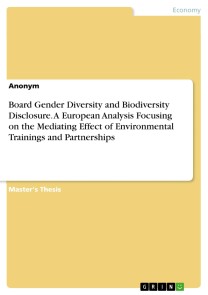 Master's Thesis from the year 2023 in the subject Business economics - Business Management, Corporate Governance, grade: 2,7, Leuphana Universität Lüneburg, language: English, abstract: Recent events such as the 15th Conference of Parties (COP15) and the European Green Deal have brought biodiversity issues to the forefront of international and European agendas, with increasing pressure on companies to improve their disclosure and performance related to biodiversity. With growing focus on the relationship between board gender diversity (BGD) and environmental performance, this study investigates the effect of BGD on biodiversity disclosure (BD). This research explores the relationship between BGD and BD by analysing a sample of 2,793 firm-year observations from European non-financial companies listed on the European STOXX600 index from 2009 to 2020. A three-way fixed-effects ordered logistic regression model was employed, incorporating legitimacy and critical mass theory. The results demonstrate a positive association between BGD and BD, with a stronger relationship for companies in exploitative industries. However, there was no support found for the critical mass theory, and no mediating effect of environmental trainings or partnerships was detected. These findings highlight the importance of gender diversity in promoting sensitivity to societal and institutional concerns, as well as the need for increased transparency and accountability in companies' reporting and actions related to biodiversity. The study's implications call for companies to take proactive measures in promoting diversity and sustainability to meet growing regulatory and stakeholder demands.