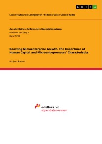 Project Report from the year 2016 in the subject Economics - Economic Cycle and Growth, grade: 1,0, Quest University Canada, language: English, abstract: Our study, despite general doubts, aims to deliver answers to how exactly growth of microenterprises is possible. Our proposed experiment combines different aspects of recent studies that found positive effects on growth. We thus want to set our study in the context of a larger, new strategy in development economics, proposed by Banerjee and Duflo in “Poor Economics”: “the accumulation of a set of small steps, each well thought out, carefully tested, and judiciously implemented”.Through a global economic perspective, it is striking that some countries are very rich and some countries are very poor. In order for poor countries to catch up, their economies have to grow. This growth can be generated through foreign companies in developing countries or firms run by local elites.However, these comprise the dangers of profits not staying in the country and of strengthening corrupt of oppressing elites. An alternative way lies in the generation of growth of very small enterprises. The incomes they generate are more likely to reach the poorer part of the population (e.g. by creating employment) or to be reinvested generating further growth than when money flows to local elites or abroad. We thus see the generation of growth for microenterprises as crucial in terms of the economic development and alleviation of poverty in poor countries. However, we agree with Easterly, that it is wrong to ask “the question of what the end of poverty requires” (Easterly, 2006, p. 11). Instead, it is important to look at more concrete problems and find ways to solve them. We see growth of microenterprises as one of such problems, as it is inhibited by a number of constraints. Some researchers even raise “doubts that microenterprises can generate general economic growth” (Fiala, 2013).Even the young, widely implemented phenomenon of microfinance has not changed much in terms of growth. In Poor Economics, Banerjee and Duflo write about microfinance: “”We cannot count on it to be a stepping-stone for larger business to be created”, and that this would be “the next big challenge for finance in developing countries” (Banerjee & Duflo, 2012).