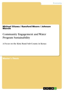 Master's Thesis from the year 2018 in the subject Economy - Environment economics, Catholic University of Eastern Africa (Arts and Social Sciences), language: English, abstract: The study serves to bring out a number of important issues under the discourse of community engagement. First, this study is key to informing policy debates on matters or issues of sustainability linkages, and it contributes as well to the present literature on the discourse around community engagement and program sustainability in Kenya. Secondly, of keen interest to the study is that it also seeks to explore and shed light on a myriad of areas that development actors on the continent could seize in a bid to improve the social-economic conditions of under-served and disadvantaged communities. This is in line with international obligations on effective community engagement for program sustainability.Community engagement plays a vital role in ensuring sustainability of outcome and has become a buzz terminology in the global sustainability discourse. When communities are effectively engaged on a particular initiative, the outcome leads to mutual benefits and durability. With the growing interest in engagement strategies for sustainable outcomes the researcher focuses his attention on community engagement in relation to water program sustainability. The study adopts a mixed research approach and collects data from participants through random sampling method using questionnaires administered by the help of enumerators and in-depth interview with key informants.