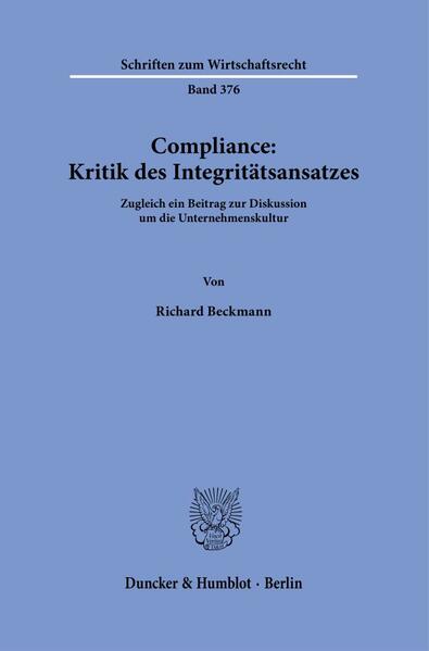 'Compliance: Critique of the Integrity Approach. A Contribution to the Discussion on Corporate Culture, Too': How well can corporate culture be influenced in order to promote compliance? Does appealing to values and morality promise success in this regard? Yes, according to those in favor of the Integrity Approach. Richard Beckmann demonstrates where this approach falls short - and why it is nevertheless necessary to develop an understanding of those obligations and constraints that lie beyond the legal framework.