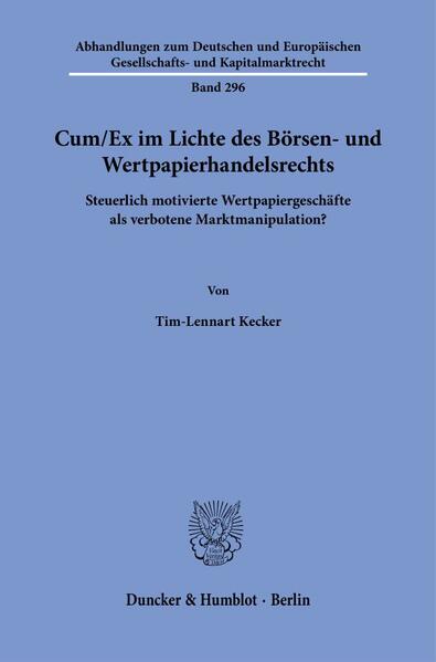 'Cum/Ex in light of stock exchange and securities trading law. Tax-motivated securities transactions as prohibited market manipulation?': The thesis contributes to the debate on cum/ex and cum/cum transactions, which has so far been dominated by tax law and criminal tax law. Specifically, the thesis focusses on how tax-motivated securities transactions, particularly in the form of cum/ex and cum/cum, should be classified in terms of market manipulation prohibitions and what the consequences are in terms of legal responsibility of stock exchange supervision and securities supervision.