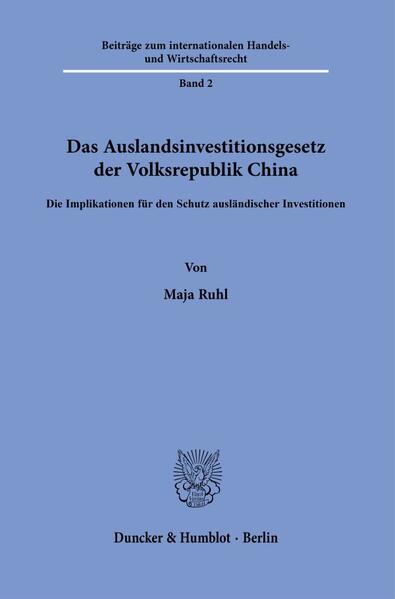 Ruhl, Maja'The Foreign Investment Law of the People's Republic of China - Implications for Foreign Investment Protection': The Foreign Investment Law of the People's Republic of China, which took effect on January 1, 2020, marks a turning point in the regulation of foreign investment. It replaces previous special laws with a single codification that promises to open up the market, facilitate investment and improve investment protection. At the same time, however, it introduces new regulatory tools that may complicate investment and affect the protection of foreign investors.