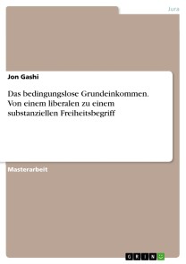 Jon GashiMasterarbeit aus dem Jahr 2019 im Fachbereich Jura - Rechtsphilosophie, Rechtssoziologie, Rechtsgeschichte, Note: 6, Universität Bern, Sprache: Deutsch, Abstract: Das Ziel der vorliegenden Arbeit ist es, aufzuzeigen, dass der vorherrschende liberale Freiheitsbegriff nicht ausreichend bestimmt ist und angesichts zeitgenössischer struktureller Probleme an seine Grenzen stößt. Dem liberalen Freiheitsbegriff soll ein weitergreifender substanzieller Freiheitsbegriff gegenübergestellt werden, der geeignet ist, den Menschen in einer hoch entwickelten Gesellschaft in zeitgemäßer Weise zu schützen. Als konkreter Lösungsvorschlag zur Verwirklichung einer substanziellen Freiheit soll das bedingungslose Grundeinkommen dargestellt werden.