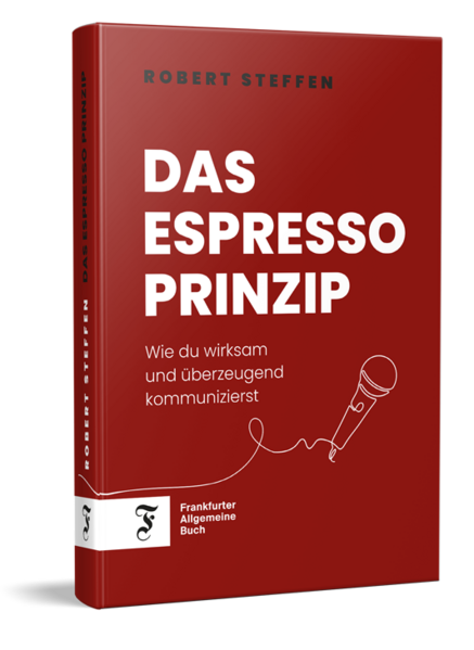 Als Kommunikationstrainer, Sparringspartner und TEDx-Coach/TEDx-Speaker begleitet Robert Steffen seit vielen Jahren Menschen auf die kleinen und großen Bühnen dieser Welt. Aus der Arbeit an weit über tausend Präsentationen - von strategischen Vorstandspräsentationen bis zu internationalen Keynotes - hat er eine ebenso einfache wie präzise Erkenntnis gewonnen: Wirksame Kommunikation funktioniert wie ein Espresso.
